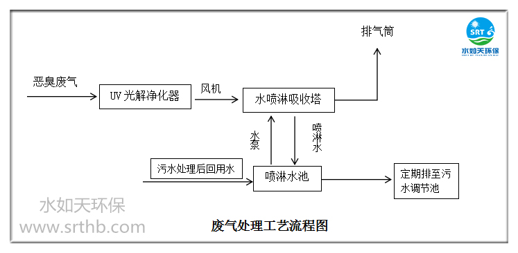 废气由集气罩统一收集后经“UV光解+水喷淋”处理工艺处理后后高空排放(排气筒不低于15米),净化率可达99.9%。