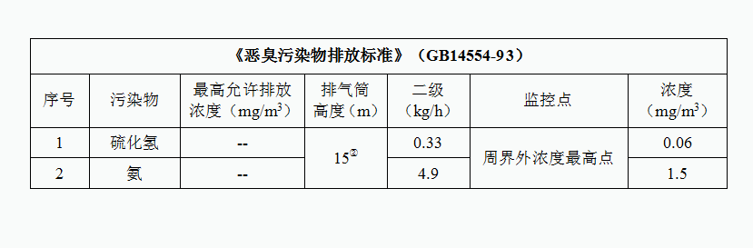 设计排放标准:《恶臭污染物排放标准》(GB14554-93)中恶臭污染物厂界标准值及排放标准值,具体参数如下表: