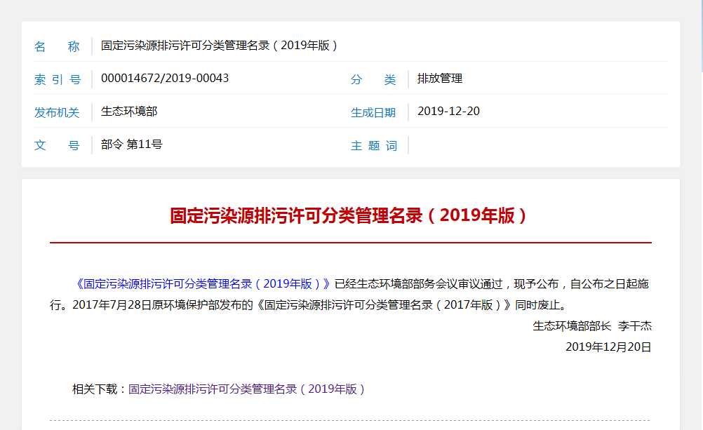 第十条 本名录自发布之日起施行。《固定污染源排污许可分类管理名录(2017 年版)》同时废止。