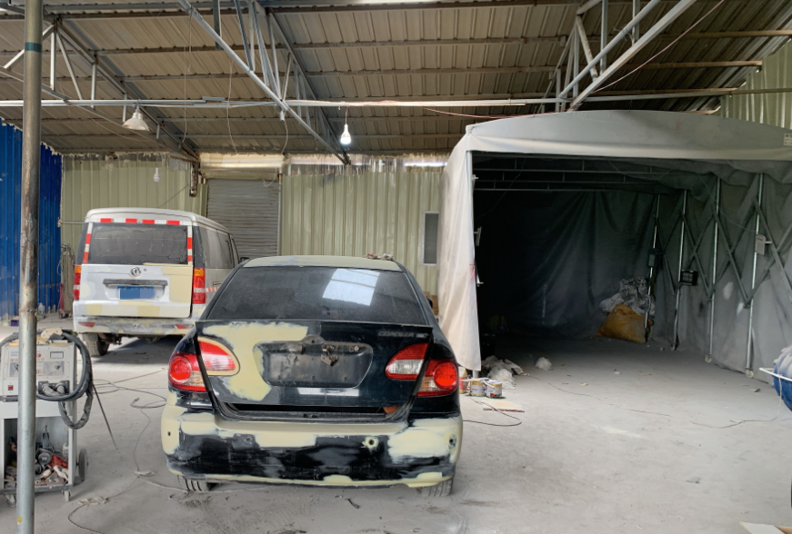 该加工场在未办理工商营业执照和相关环保审批手续的情况下,于4月初建成一个面积约200平方米的汽车维修项目,主要从事机动车喷漆经营,生产过程会产生工艺废气、粉尘,均未按规定配套相关治理设施,污染物无组织排放,对周边环境造成污染。