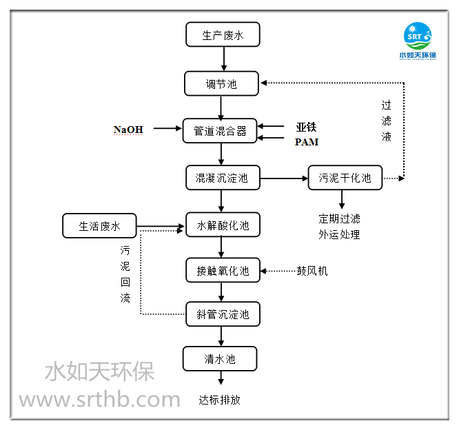 本方案的污水处理工艺为“混凝沉淀+水解酸化+接触氧化”。