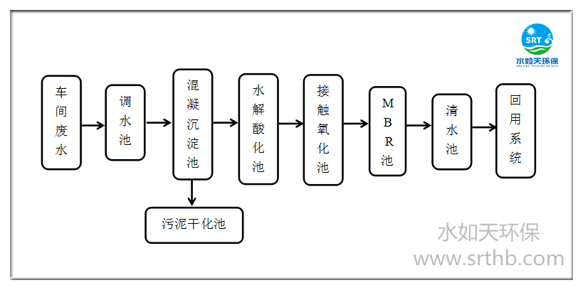 本项目废水的主要污染物质是COD、BOD5、无机盐类、悬浮物(SS)等,废水可生化性较好(BOD5/COD的比值=0.5)。结合现场有限的地形条件经过分析对比,本项目废水处理的设计以采用“混凝沉淀+水解酸化+接触氧化+MBR膜生物处理”工艺为主的处理工艺为最佳,运行稳定、水质可靠。